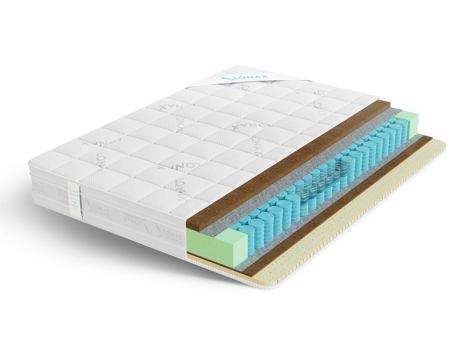 Двусторонний ортопедический матрас Lonax Cocos-Medium TFK состоит из 100% натуральных материалов.