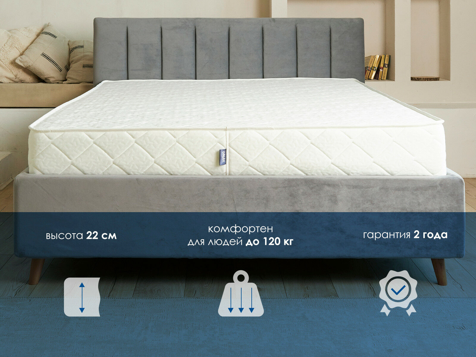 Димакс Relmas Various S1000 – двусторонний ортопедический матрас с разной жёсткостью сторон: средней и выше среднего. Модель сочетает в себе ортопедические свойства и массажный эффект, который помогает расслабить мышцы и улучшить кровообращение во время сна.