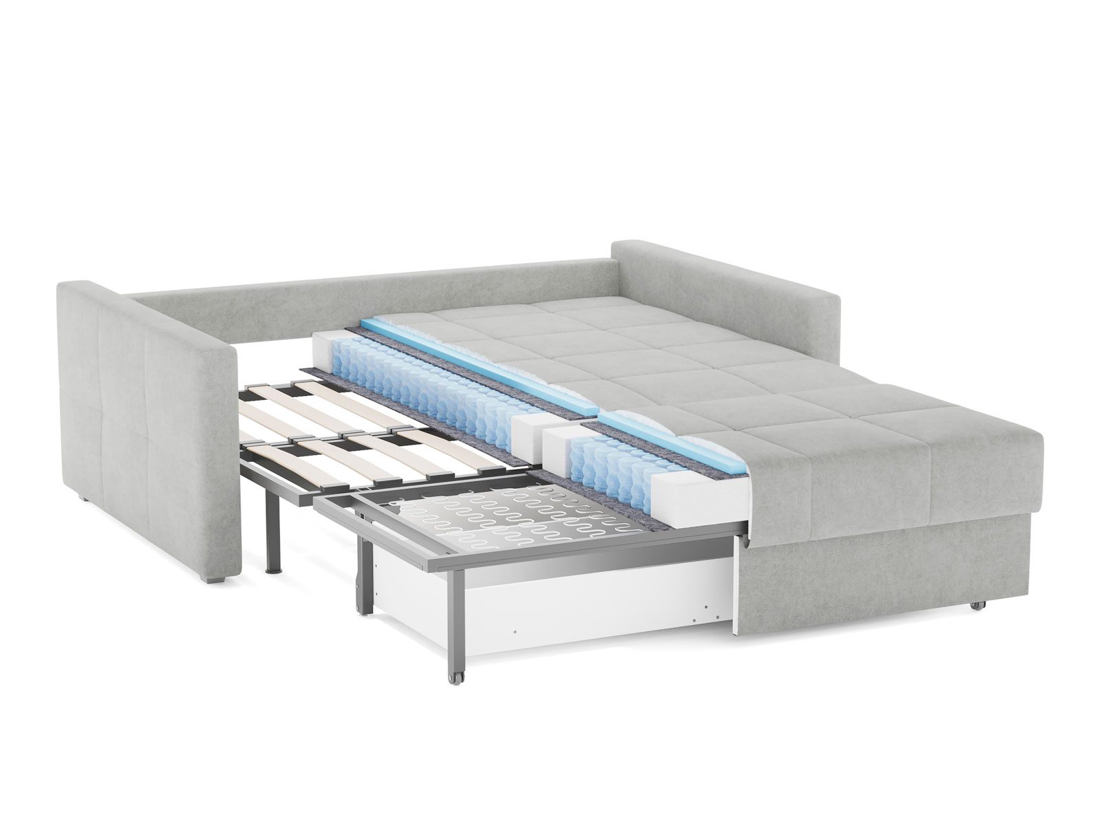 Диван-кровать Rest для сна в современном стиле, с механизмом трансформации аккордеон и коробом для хранения. Металлический каркас с деревянными ламелями обеспечивает ровную поверхность, как на кровати. Матрас анатомический с независимым пружинным блоком. Благодаря чехлу с объемной стежкой в форме квадратов, диван органично впишется в современные интерьеры и интерьеры в стиле минимализм. Лаконичные подлокотники и механизм разложения обеспечивают дивану минимальные габариты в ширину как в сложенном, так и разложенном виде. Диван Rest оборудован вместительным коробом для хранения постельного белья или аксессуаров для сна. Rest имеет 2 положения трансформации - диван с комфортной посадкой и кровать с полноценным анатомическим матрасом.