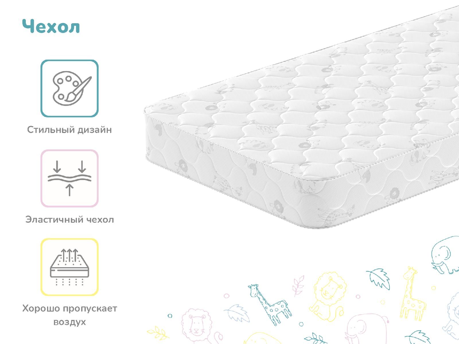 Детский матрас Гений на основе натуральных наполнителей и качественного блока с независимыми пружинами. Модель обладает жёсткостью среднего и выше среднего уровней – достаточно перевернуть матрас, чтобы добиться другого уровня комфорта.