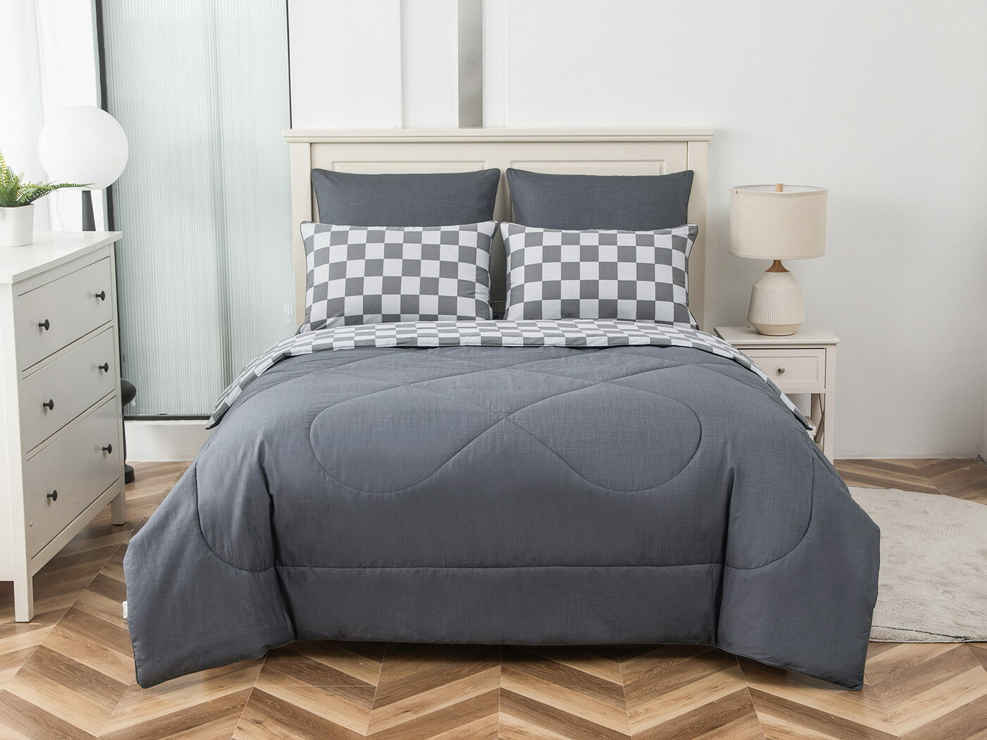 Особенность: двусторонняя модель, наволочки и одеяла декорированы кантом.