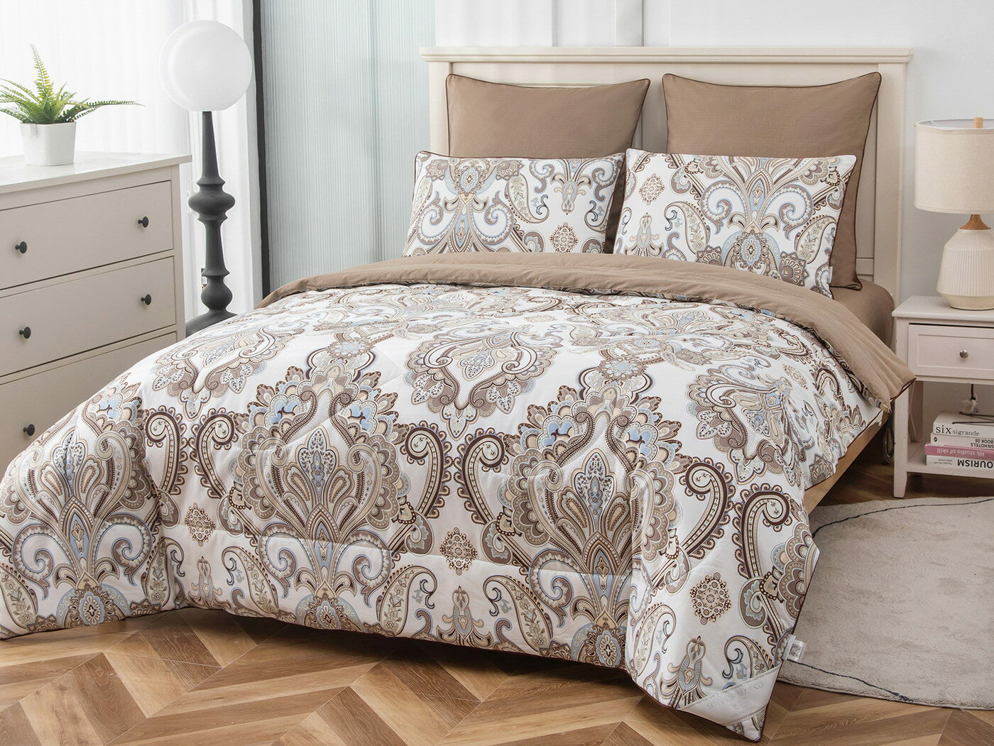 Особенность: двусторонняя модель, наволочки и одеяла декорированы кантом.