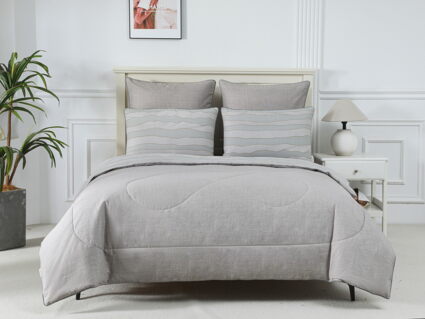 В комплект входит легкое, мягкое, летнее одеяло. Его можно стирать вместе с другим бельем, оно быстро сохнет и после стирки его не нужно гладить.