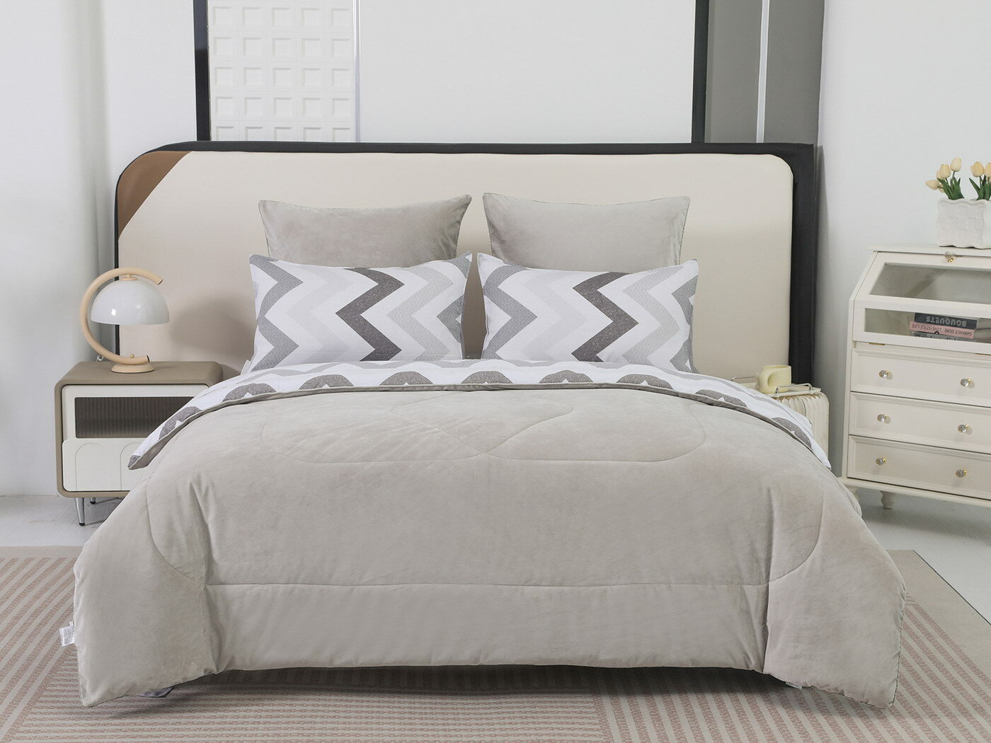 Новая коллекция комплектов «Роберто» с одеялом из однотонного велюра и принтованного сатина.
