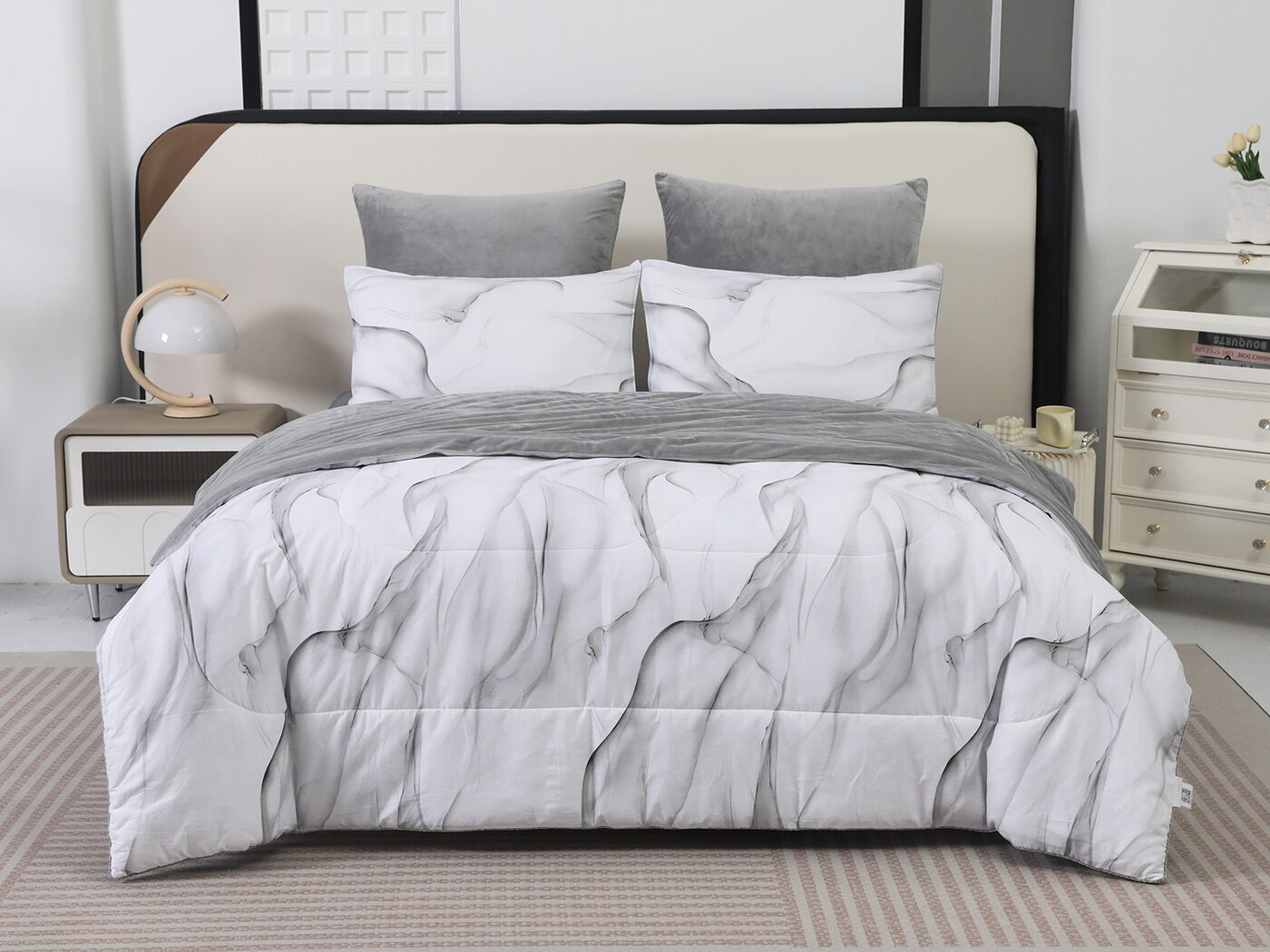 Новая коллекция комплектов «Роберто» с одеялом из однотонного велюра и принтованного сатина.