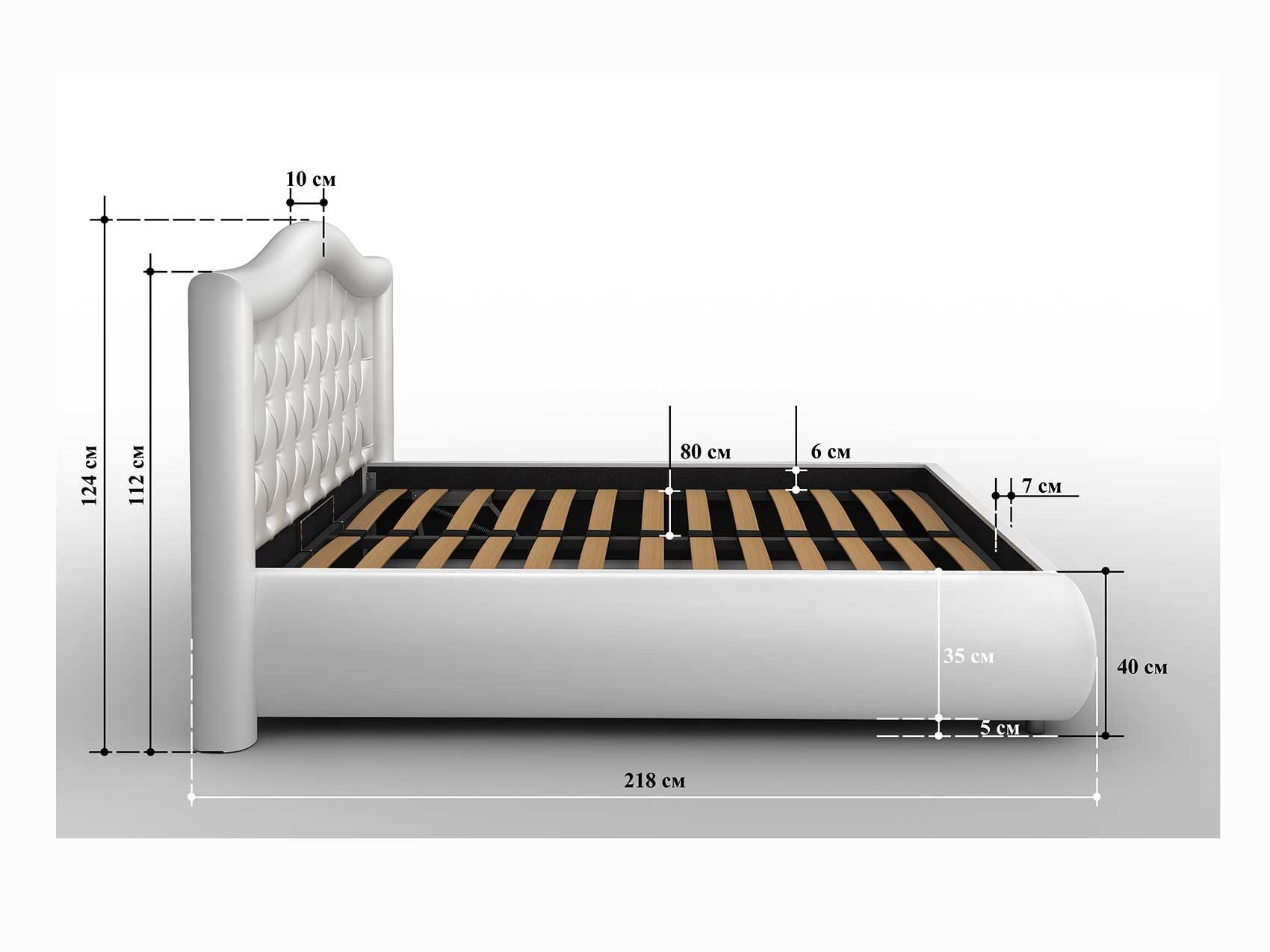 Кровать Premier 6 примечательна красивой изогнутой спинкой. Её изголовье украшает каретная стёжка, которая считается настоящей классикой для мягкой мебели. Каждая пуговица обтягивается в тон к основной обивке, в результате чего получается аккуратный ансамбль из перекликающихся между собой элементов.