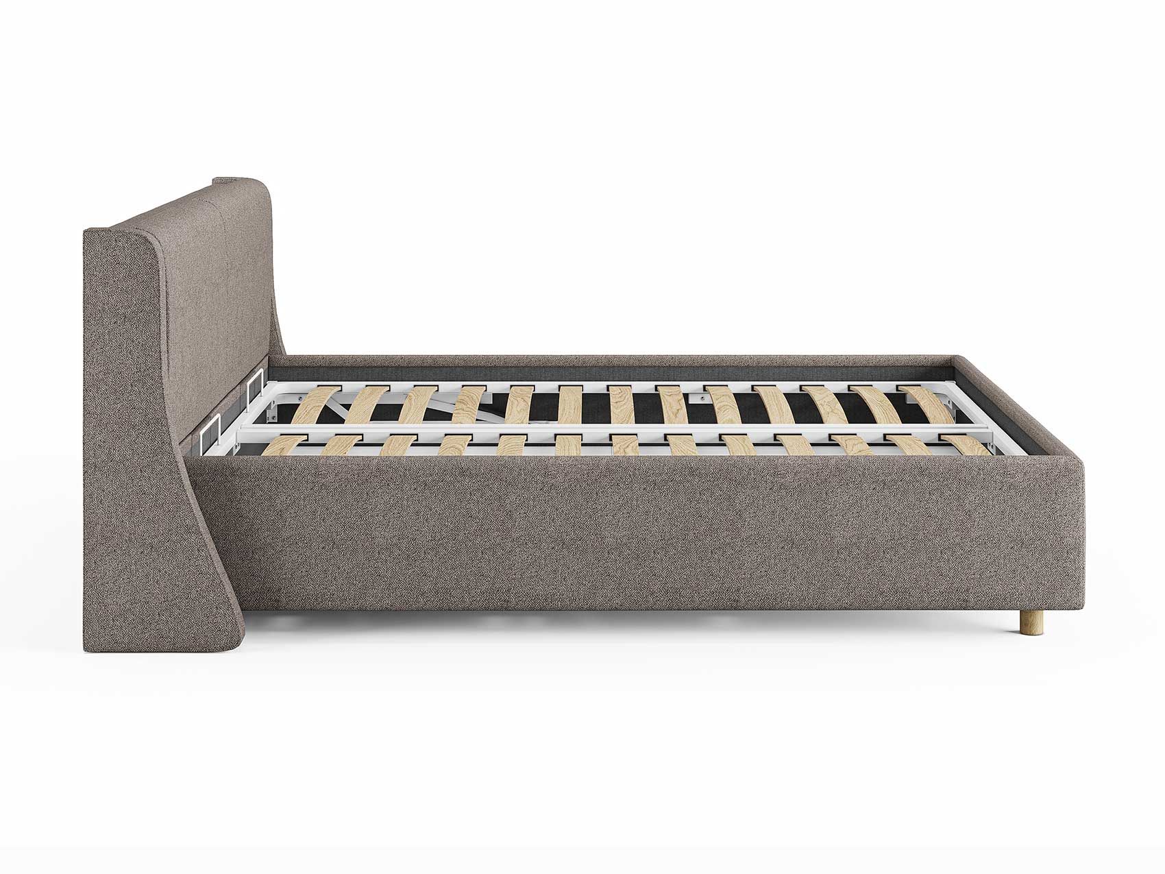 Кровать Barcelona подойдет для современных интерьеров спален, а благодаря деревянным ножкам впишется в стиль ретро, скандинавский или минимализм. При желании кровать Barcelona может быть укомплектована подъемным механизмом с бельевым ящиком.