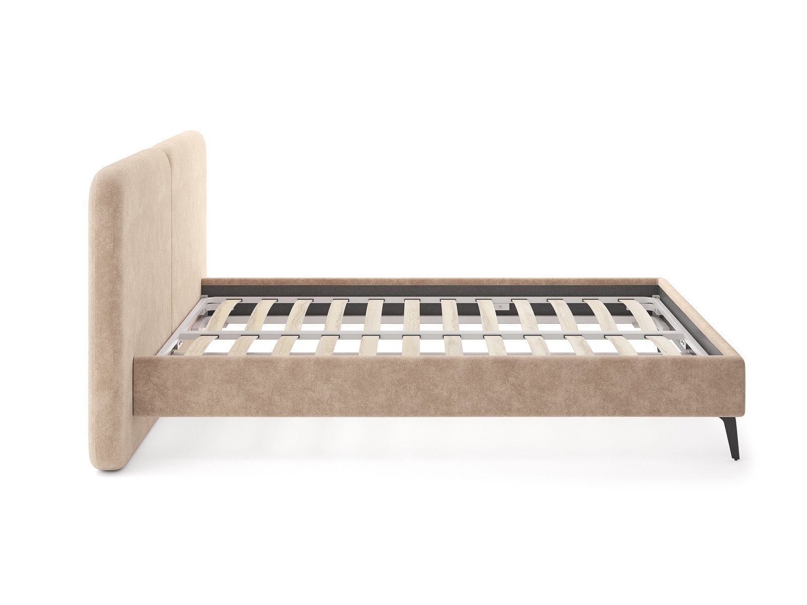 Кровать комплектуется металлическим основанием (без опор), которое имеет 13 рядов встроенных березовых ламелий на каждое спальное место, обеспечивая равномерное распределение нагрузки.