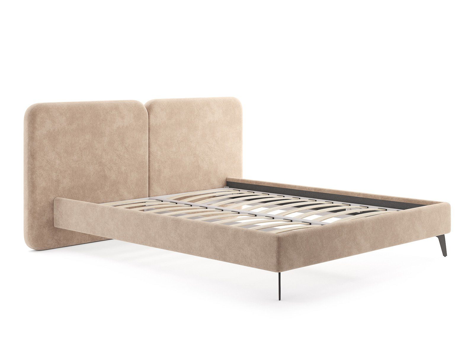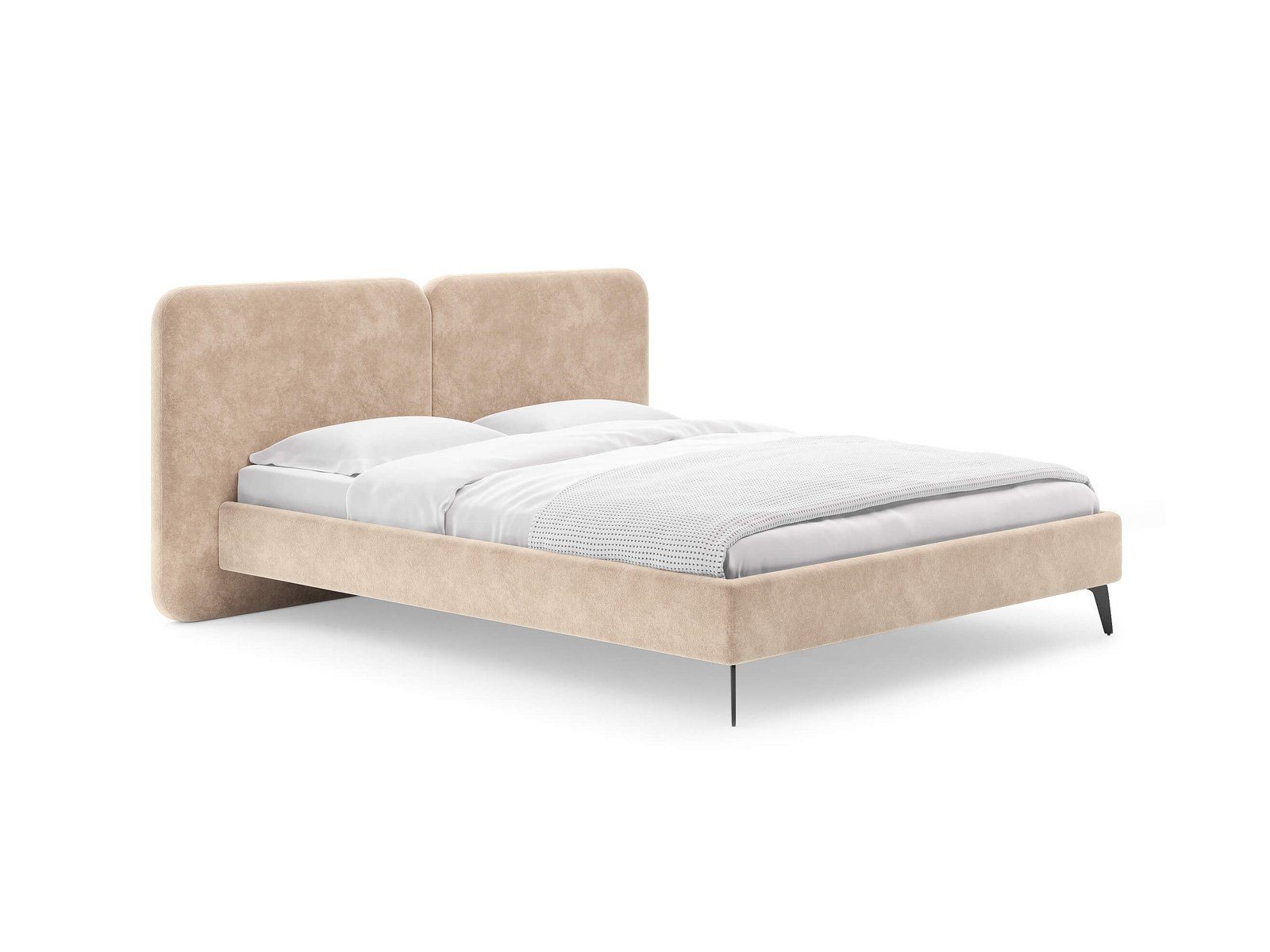 Дизайн кровати удачно подойдет для интерьеров в современном, стиле mid-century модерн. Закругленные углы, узкие царги, металлические опоры черного цвета выделяют Brooklyn из многообразия интерьерных моделей и делают ее востребованной для дизайнерских интерьеров. Изголовье выполнено в виде двух мягких подушек, они крепятся друг к другу с помощью прочного клинового соединения. Задняя часть спинки изготавливается в основной ткани - кровать можно установить в центре комнаты. Узкие царги и изящные металлические опоры, делают кровать легкой и лаконичной. Прочность кровати достигается за счет металлического каркаса по периметру. Модель укомплектована ортопедическим основанием. Расстояние до царг способствует легкой уборке под кроватью, в том числе роботом – пылесосом.