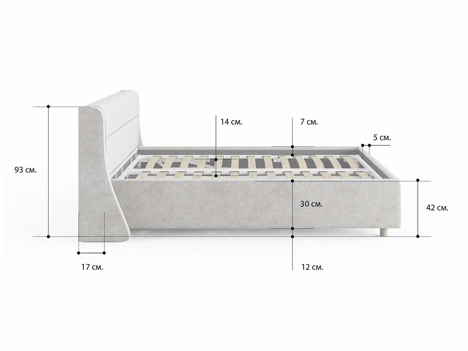 Допустимая высота матраса - 30 см.