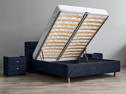 Кровать комплектуется металлическим основанием и подъемным механизмом со вместительным бельевым ящиком. Дно бельевого ящика легко сдвигается для обеспечения уборки под кроватью.