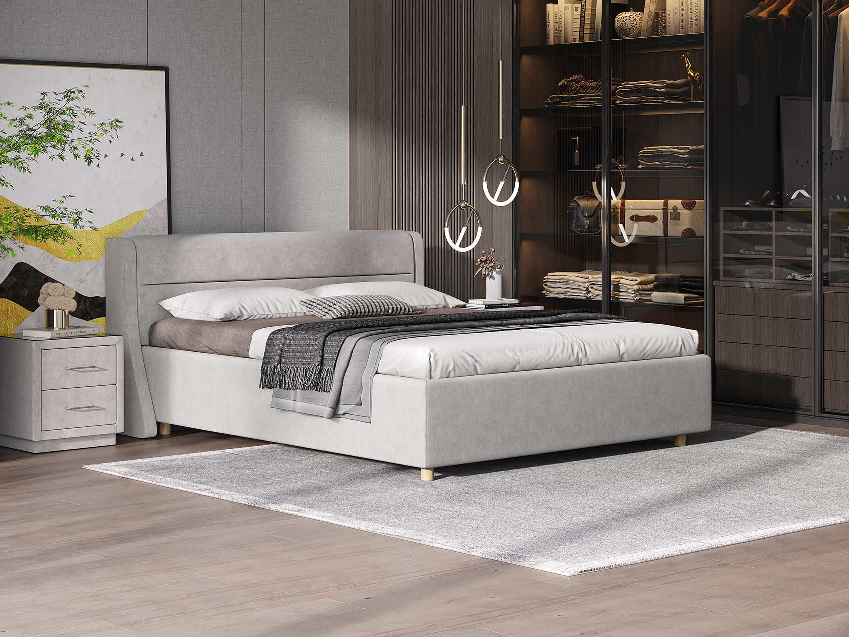 Кровать Madrid с мягким изголовьем - идеальный выбор для любителей лаконичности, строгости и уюта в интерьере Глубокая горизонтальная утяжка на изголовье добавляет модели выразительности. Изогнутые боковые части гармонично завершают дизайн кровати. Плавные линии и скругленные углы настраивают на комфортный отдых и восстановление.