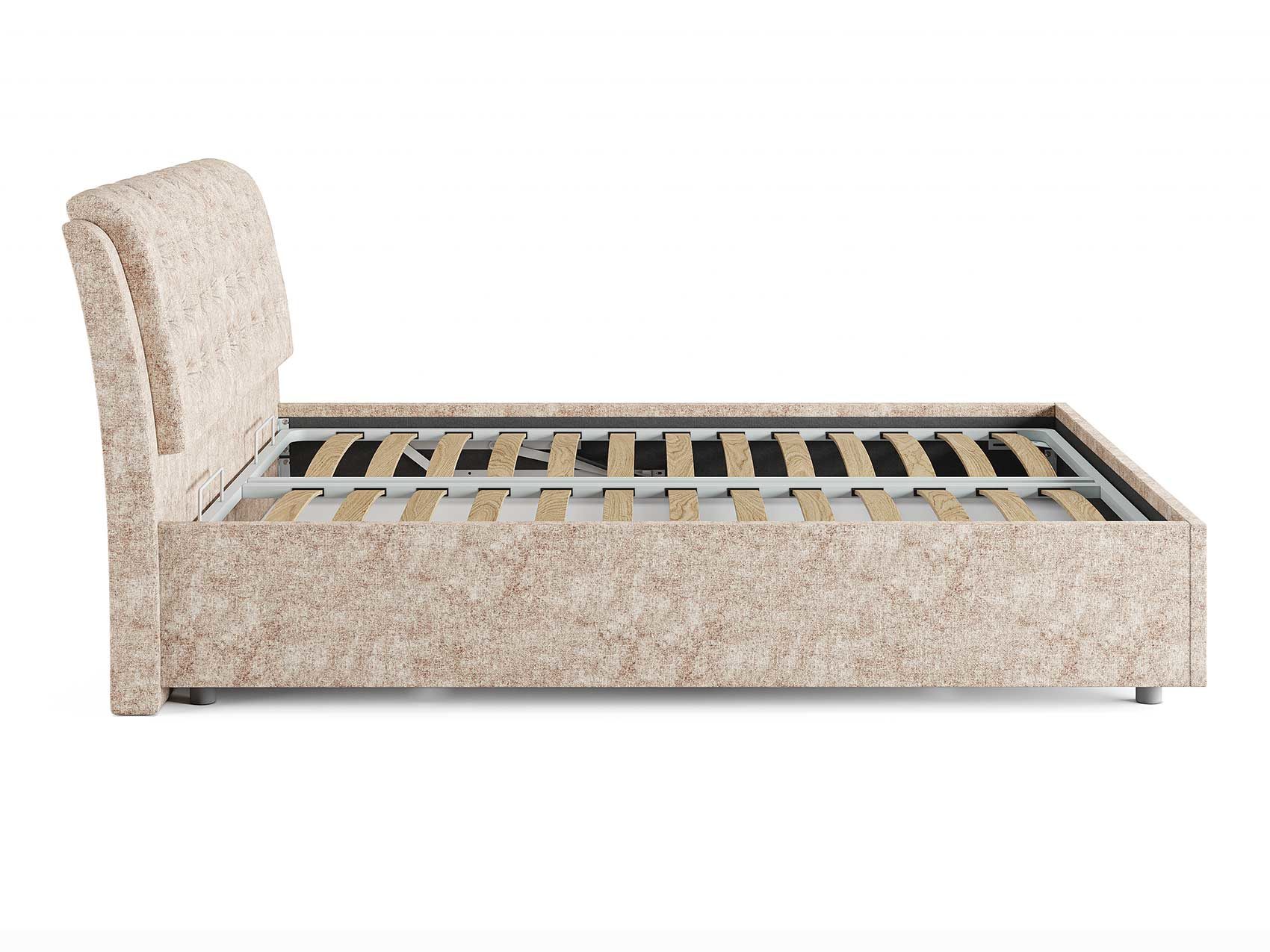 Кровать комплектуется металлическим основанием (без опор), которое имеет 13 рядов встроенных березовых ламелий на каждое спальное место, обеспечивая равномерное распределение нагрузки.