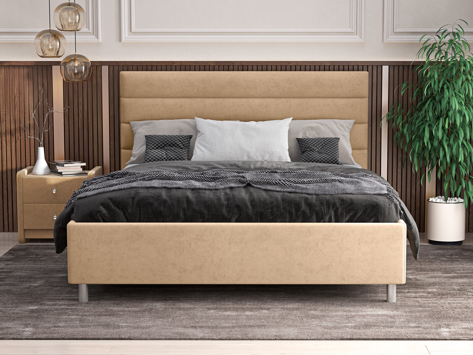 Кровать Левита станет отличным выбором для современных интерьеров, привнося уют и гармонию в любое помещение. Горизонтальная стёжка украшает мягкое изголовье кровати, придавая объем и создавая дополнительный комфорт.