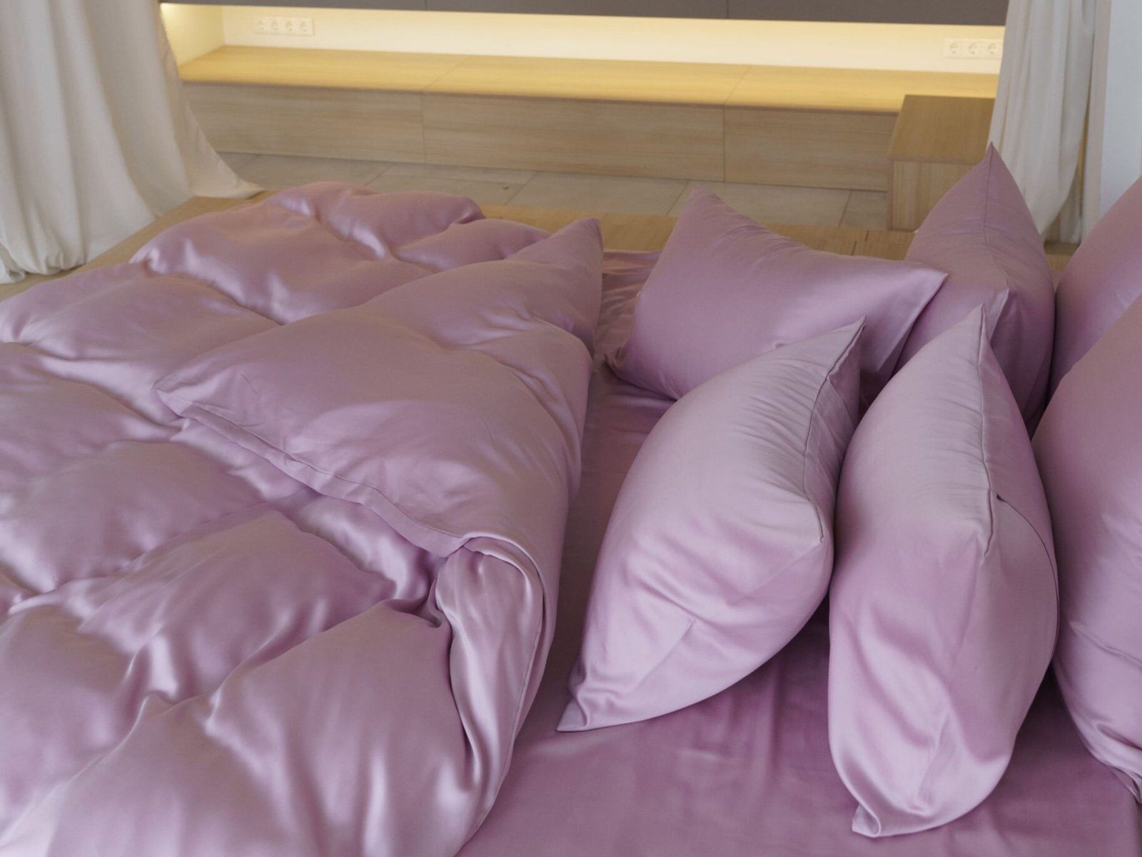 Простыня классическая, наволочки классические без декоративных элементов на запахе, пододеяльник на кнопках. Возможно приобрести комплекты с простыней на резинке (180х200x40 или 160х200x40) и с наволочками 70x70 см. Стоимость уточняйте при заказе.