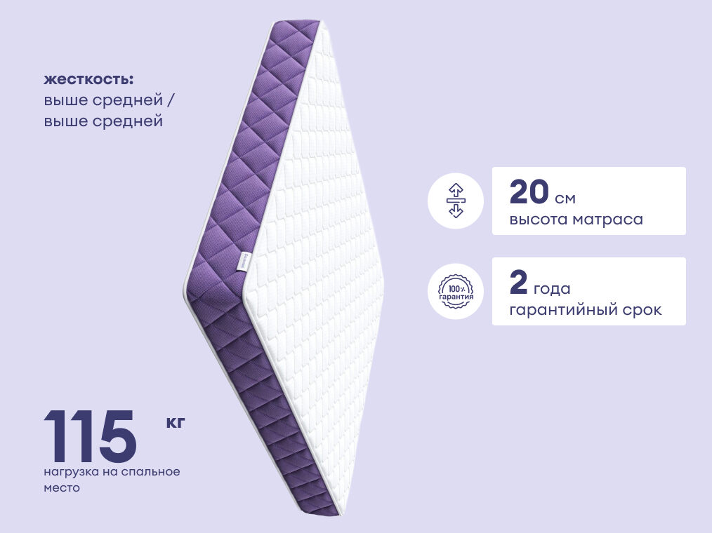 Матрас Базилик Фреш 20 Кокос сочетает в себе удобство и надёжную поддержку. Два вида наполнителей и средний уровень жёсткости делают его отличным выбором для полноценного отдыха. Яркий лавандовый бурлет привносит стиль французского Прованса прямо в ваш дом.