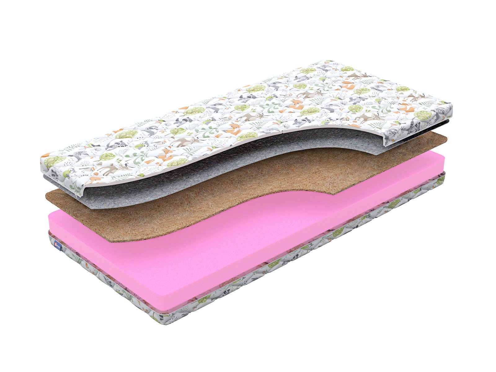 Димакс Сорванец – это детский беспружинный матрас с поддержкой за счет кокосовой койры и двумя разными уровнями жёсткости. Средние значения мягкости приобретаются благодаря ортопедической пене, а сторона пожёстче – кокосовой койре. Такая конструкция позволяет настраивать спальное место, обеспечивая ребёнку удобный и здоровый сон.