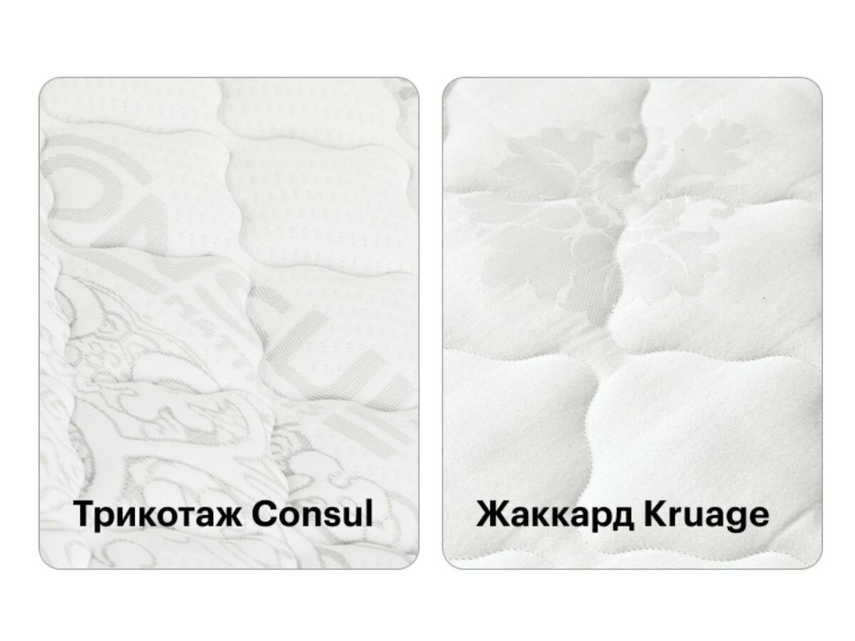 Чехол со смотровой молнией. Стоимость указана за матрас с чехлом Трикотаж Consul (75% хлопок, 25% полиэстер). За дополнительную плату возможна замена чехла на Жаккард Kruage (90% хлопок, 10% полиэстер) или Вискозный шёлк Luxury (100% вискоза), стоимость уточняйте у наших менеджеров.