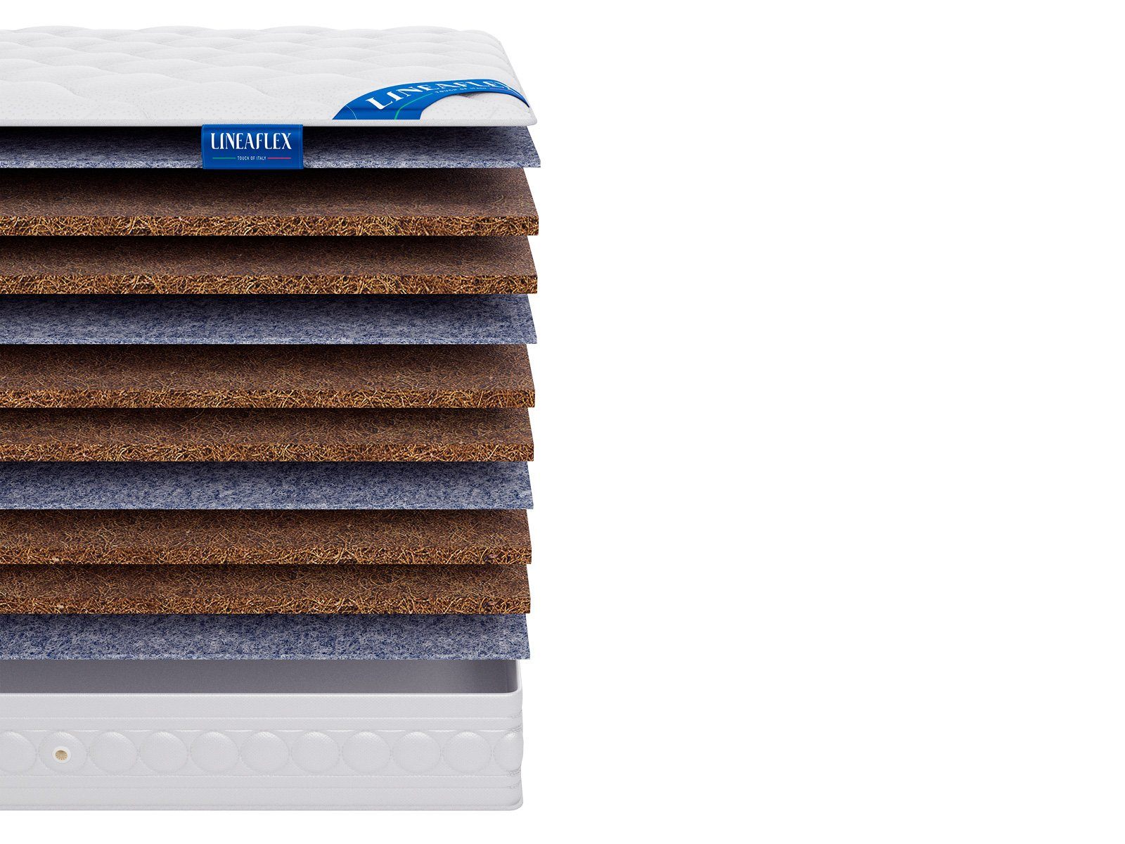 Для того, чтобы добиться высокой жёсткости производитель использовал беспружинное наполнение, сформированное из объёмных кокосовых плит. В матрасе установлено сразу 6 слоёв койры кокоса по 3 см каждая. Таким образом общая высота изделия достигает 21 см.