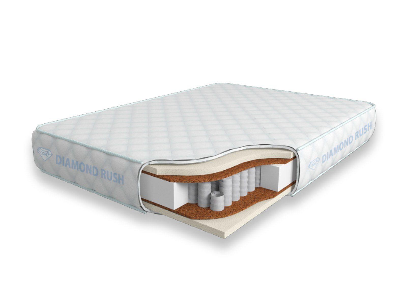 Матрас Diamond Rush Mono Mix Ergo 725SD имеет в своей основе независимый пружинный блок 725, состоящий из пружин диаметром 5-6 см. В качестве настилочных слоев поверх пружинного блока используются износостойкий искусственный латекс и латексированная кокосовая койра. Такой матрас имеет среднюю жесткость с обеих сторон.