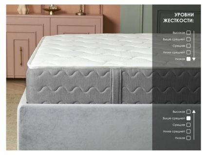 Высота матраса составляет 20 см, рекомендованная нагрузка – 130 кг на спальное место.