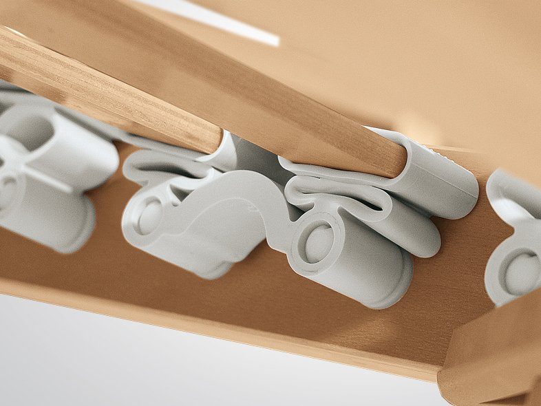 Идеальное решение для тех кому рекомендовано спать с приподнятыми ногами (например при варикозной болезни), либо головой (при храпе и/или апное). Многослойная система с двумя 38-мм планками, закрепленными внутри края рамы. Система настройки жесткости плечевой и центральной зоны.