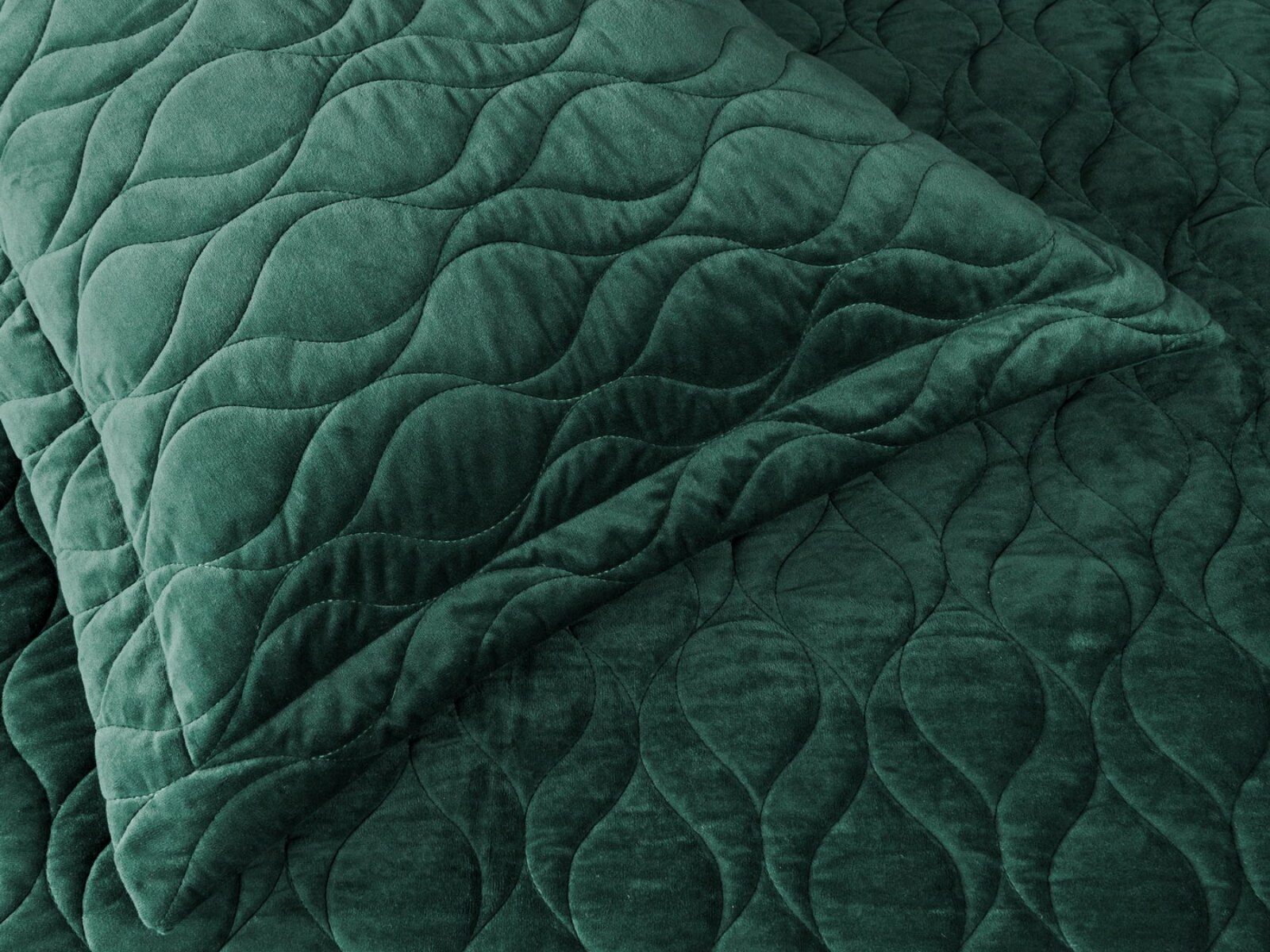 Покрывала и наволочки изготовлены из велюра высокой плотности - приятной на ощупь бархатистой ткани с коротким ворсом. Пошив покрывала с кантом, наволочки с ушками 5 см.