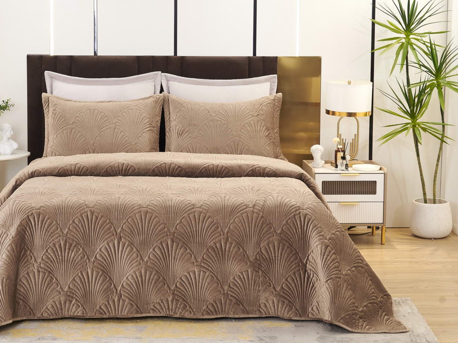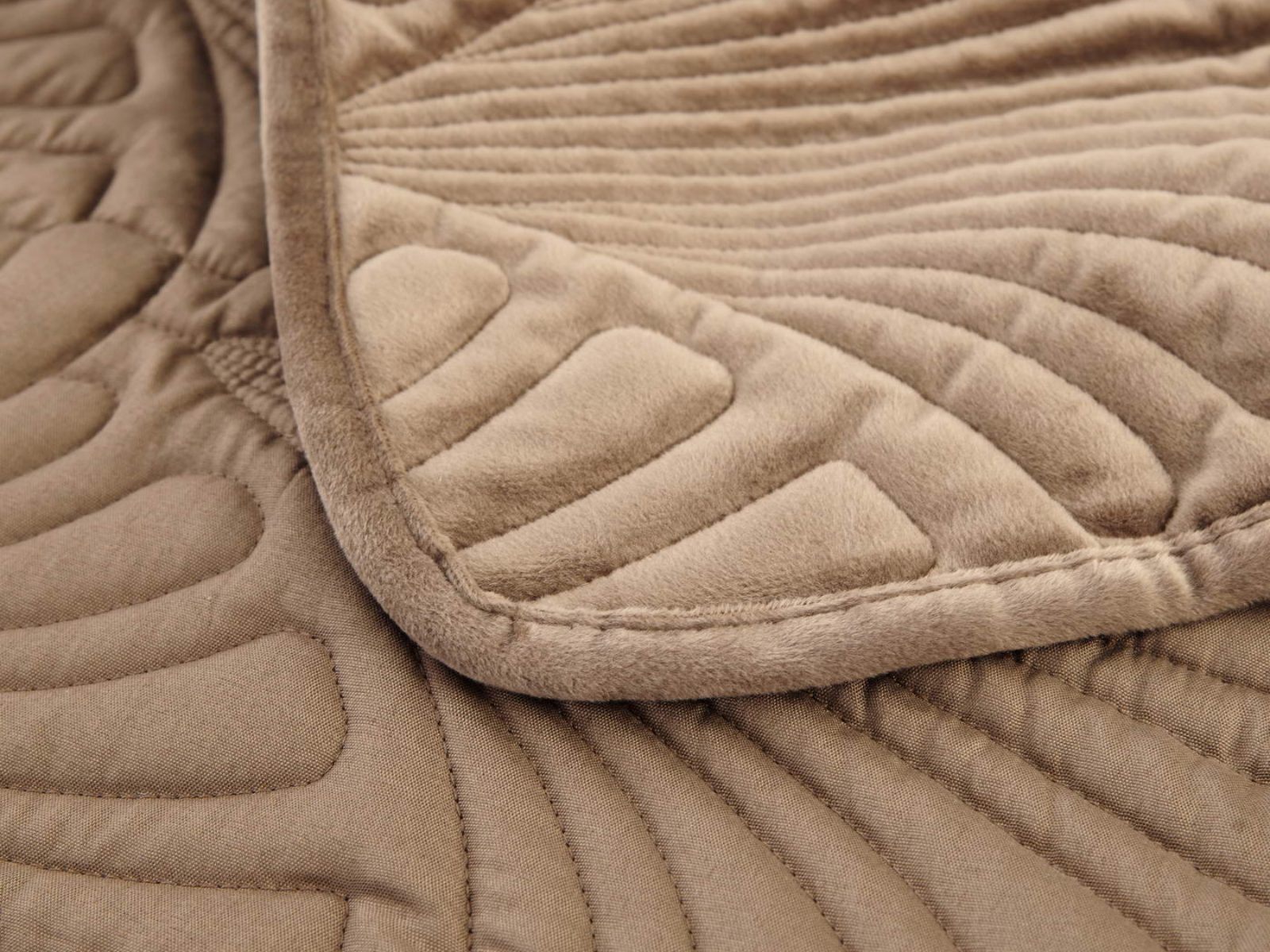 Роскошное велюровое покрывало Ариэль станет изюминкой любого интерьера, ведь оно потрясающе выглядит и приятное на ощупь. Обратите внимание на стежку покрывала – она выполнена в виде ракушек с эффектом 3D. Из-за особого плетения, велюровая ткань покрывала отражает свет и красиво переливается при различном освещении.