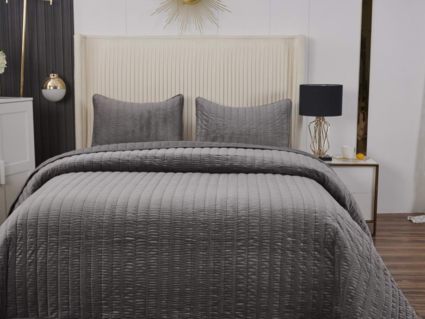 Величественный вид, мягкость материала, королевская роскошь – всё это идеально описывает новое покрывало Фердинанд. Оно выполнено из велюра на основе полиэстера и представлено в оттенках: чайная роза, молоко, бежевый, кофе, стоун, серый и мокко.