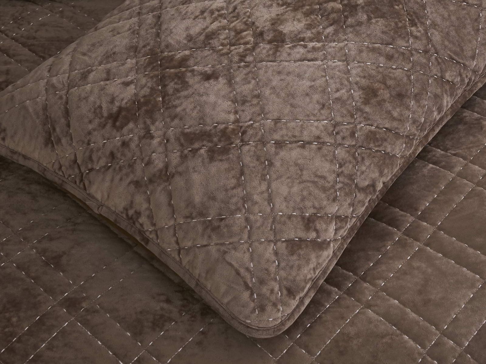 Покрывало Селена выполнено в девяти оттенках: пудра, антрацит, беж, изумруд, капучино, пепел роза, серебро, стоун, терракот. Они подойдут практически для любого интерьера, от классического, до модерна или романтического. Стеганое бархатное покрывало будет необыкновенно смотреться на вашей постели. В комплект входят покрывало и одна либо две наволочки (50х70 см) из аналогичного материала в зависимости от размера.
