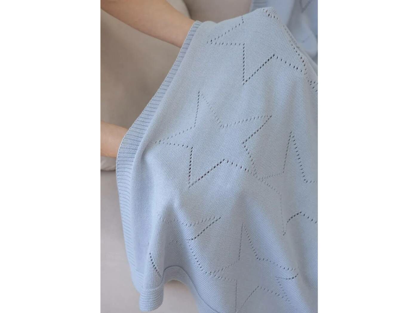 Пледик SELF STARS имеет современный дизайн в виде ажурных звезд. Связан машинным способом из мягкого гипоаллергенного 100% хлопка.