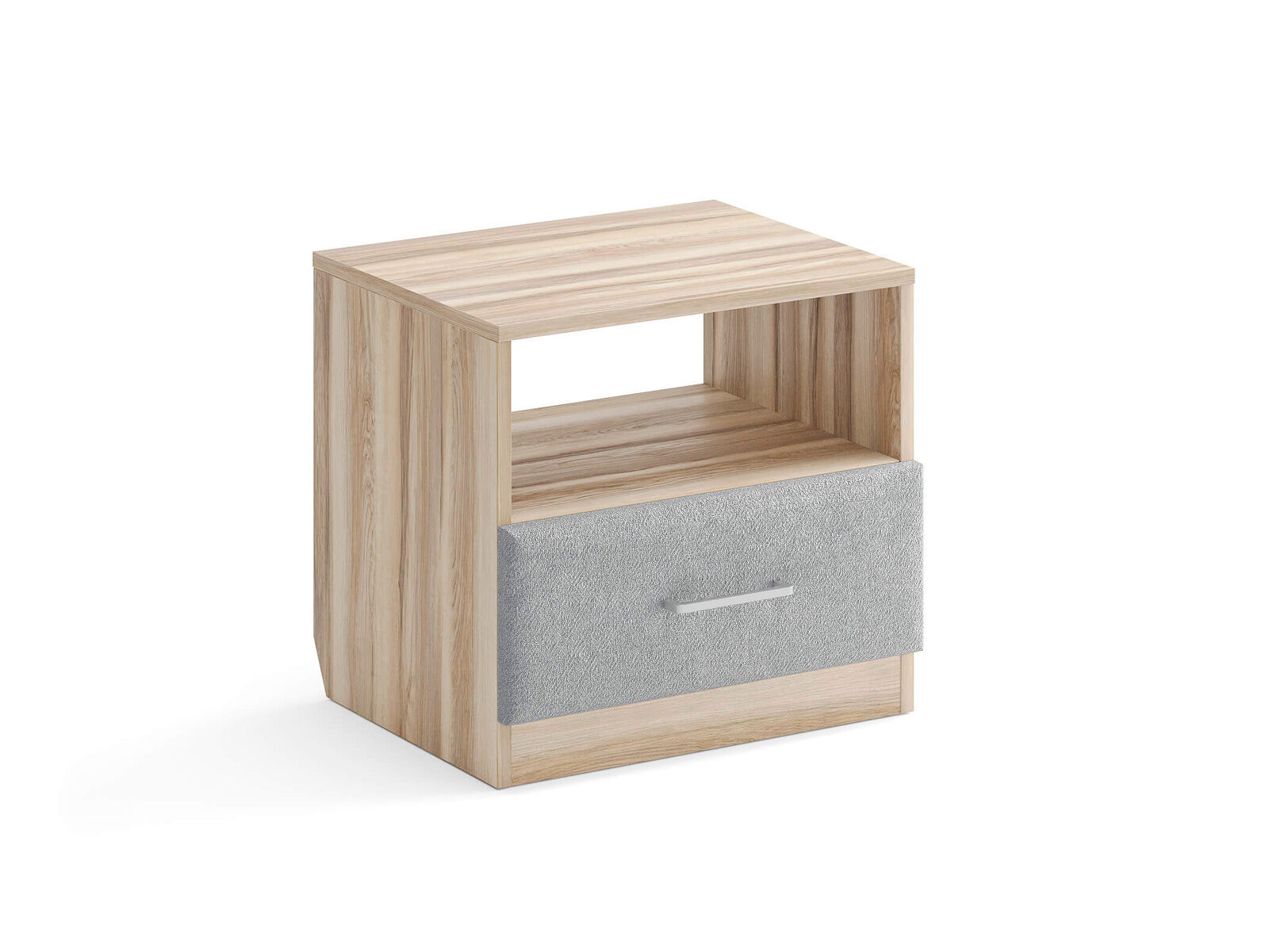 Элегантная комбинированная тумба, сочетающая в себе лаконичность ЛДСП и уют мягких фасадов ящиков, обтянутых тканью. Конструкция тумбы предусматривает открытую нишу для мелочей и вместительный выдвижной ящик с направляющими скрытого монтажа и доводчиками. Корпус из ЛДСП гарантирует долговечность и устойчивость к механическим повреждениям, а мягкие фасады в ткани и изящные металлические ручки добавят уют. Большое разнообразие текстур и цветовых решений для гармоничной интеграции в любой интерьер.