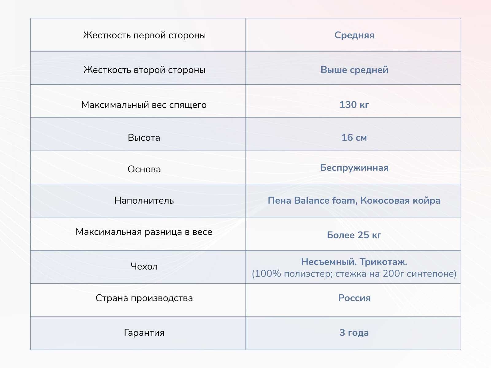 Модель сочетает в себе универсальность двух различных по мягкости поверхностей, высококачественные наполнители и современный дизайн. Матрас станет идеальным выбором для тех, кто ценит здоровый сон, свежесть и долговечность, не переплачивая лишние деньги.
